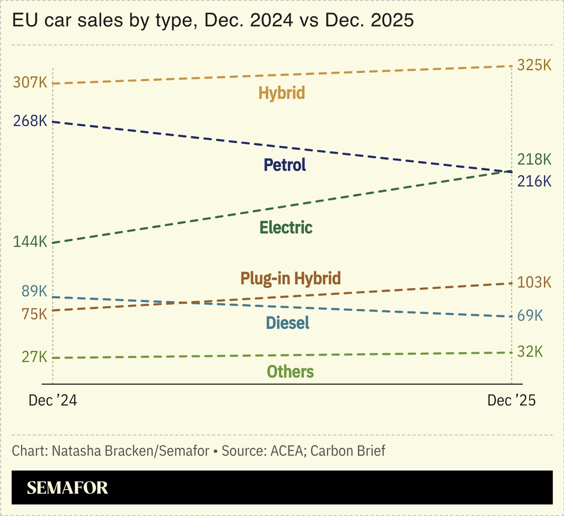 elektrische auto's | De verkoop van volledig elektrische auto’s in Europa heeft in december voor het eerst die van benzineauto’s ingehaald. Dat is mede te danken aan goedkope Chinese modellen. Terwijl Tesla terrein verliest, versoepelt de Brussel de toelating van Chinese elektrische auto's. Lees hier meer.